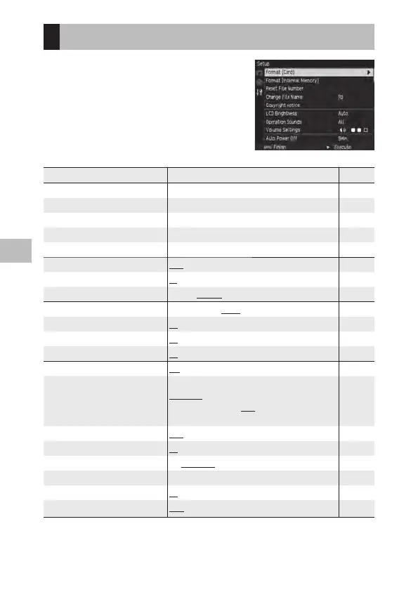 Auto Power Off Off, 1 to 30 Min. (5 Min.) P. 29