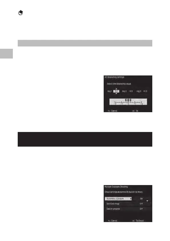 1 In the [Shooting] menu, under [Auto Bracket], select either [AE-