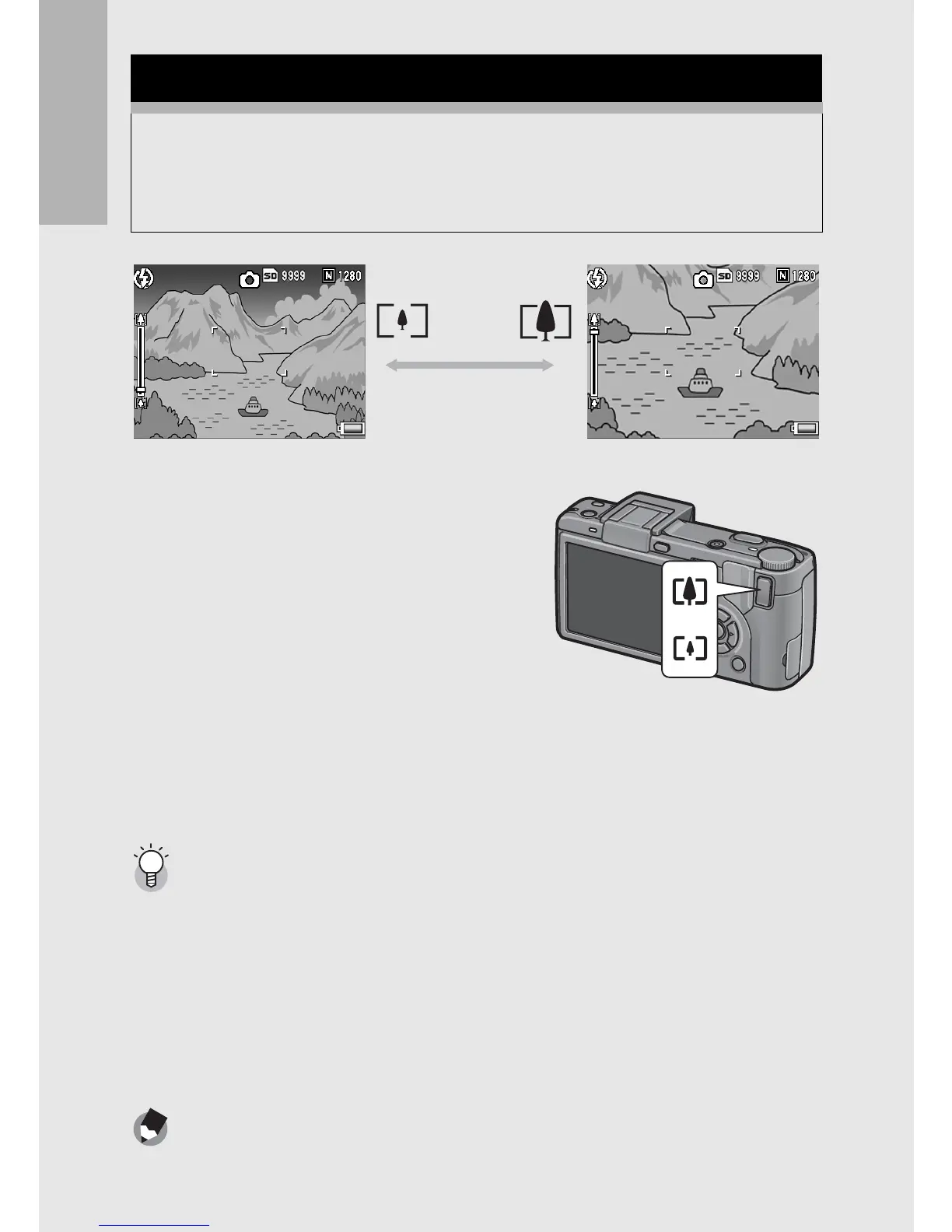 Pressing the z (Telephoto) button allows you to take a close-up