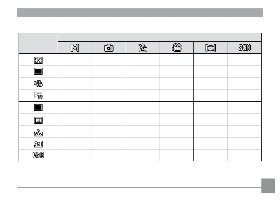 • Shooting menu in the shooting mode (O: Optional X: Not optional)