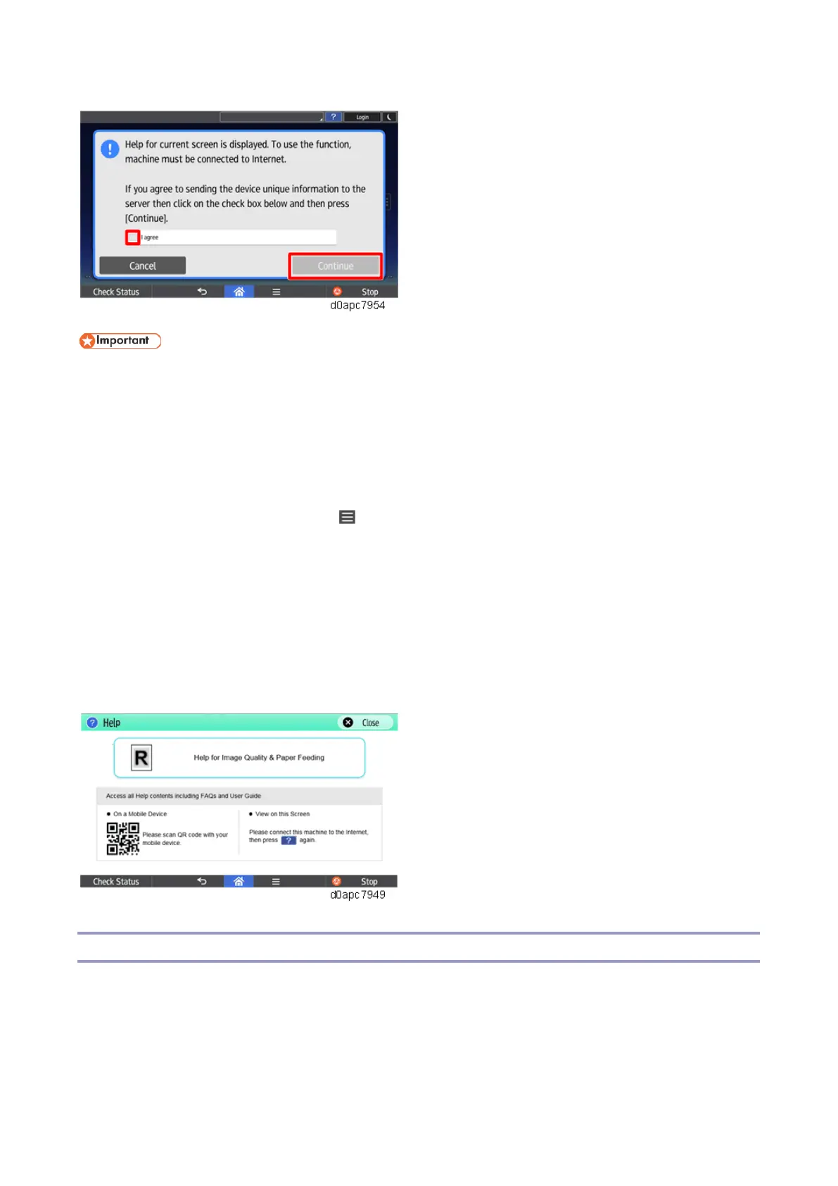 the machine is offline, only Help for Image Quality & Paper Feeding information can be browsed, and