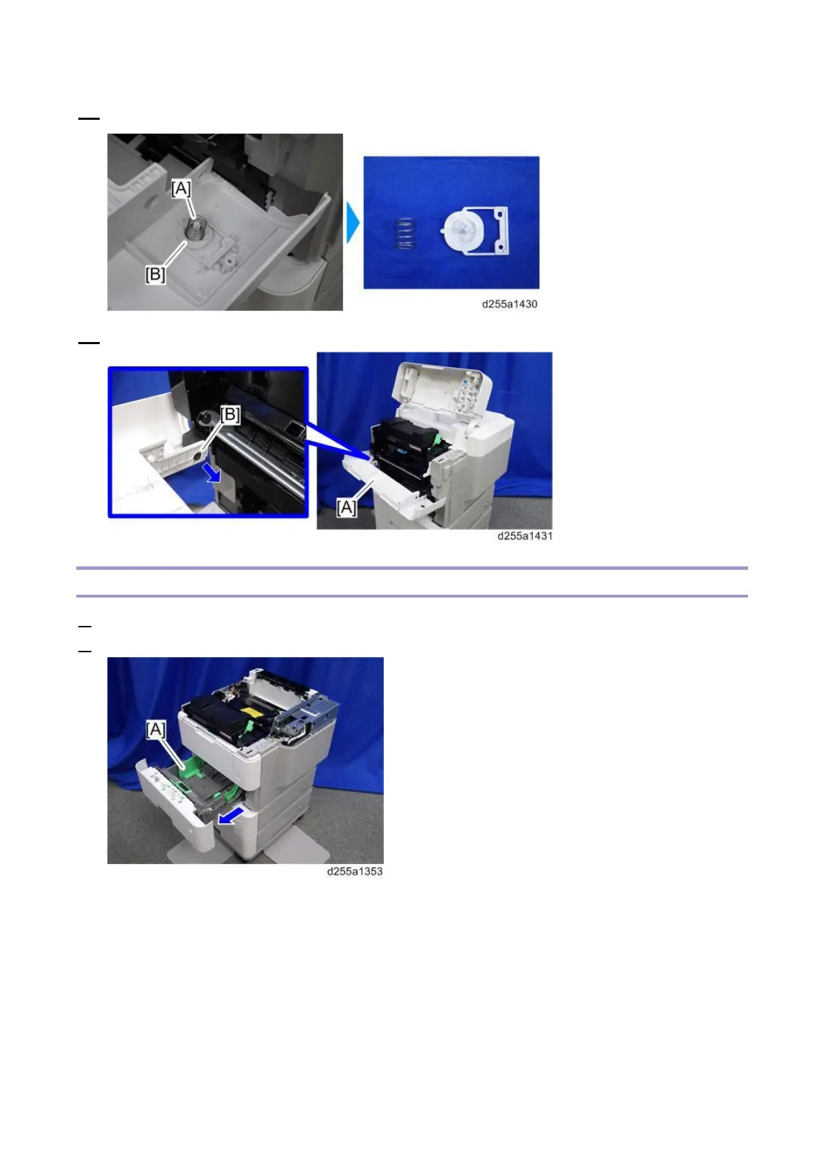 12. Remove the front cover [A] by releasing the left hinge [B].
