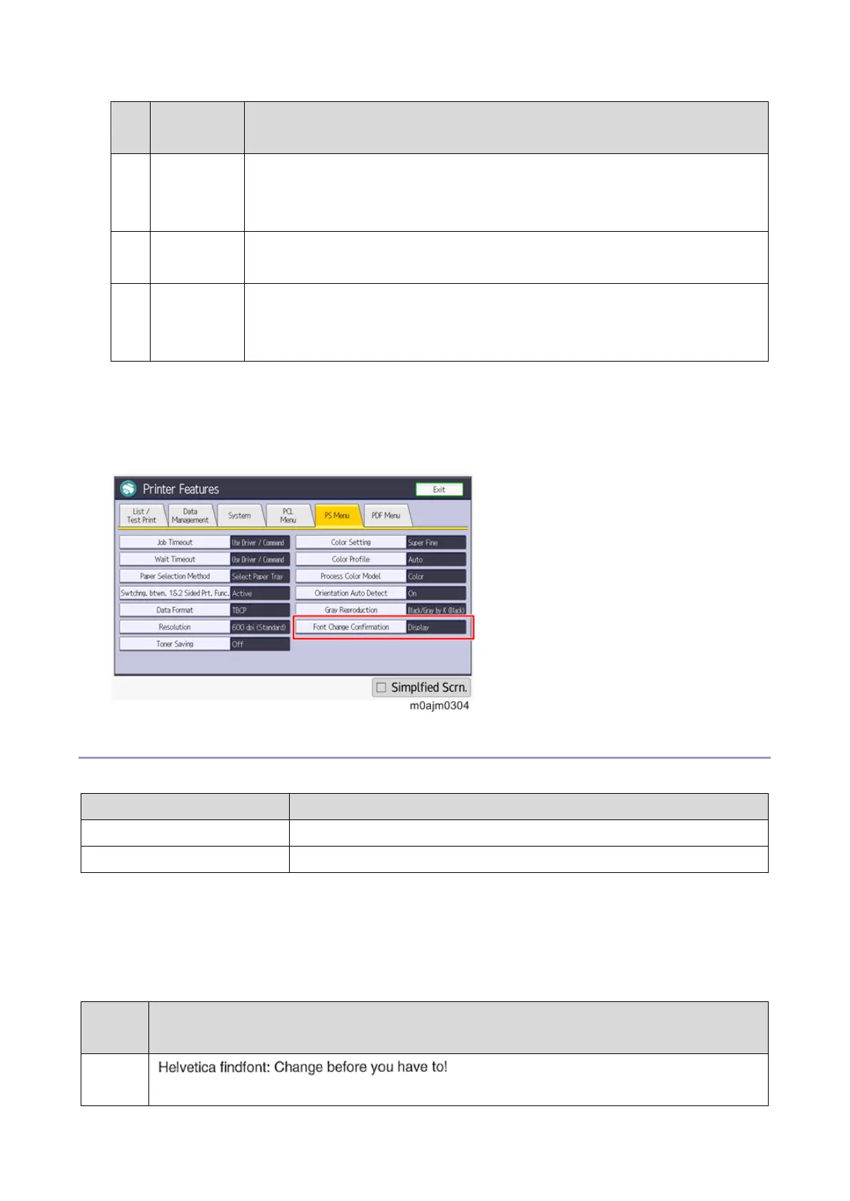 Use of a substitute font sometimes leads to different printing results, as shown in the table below.