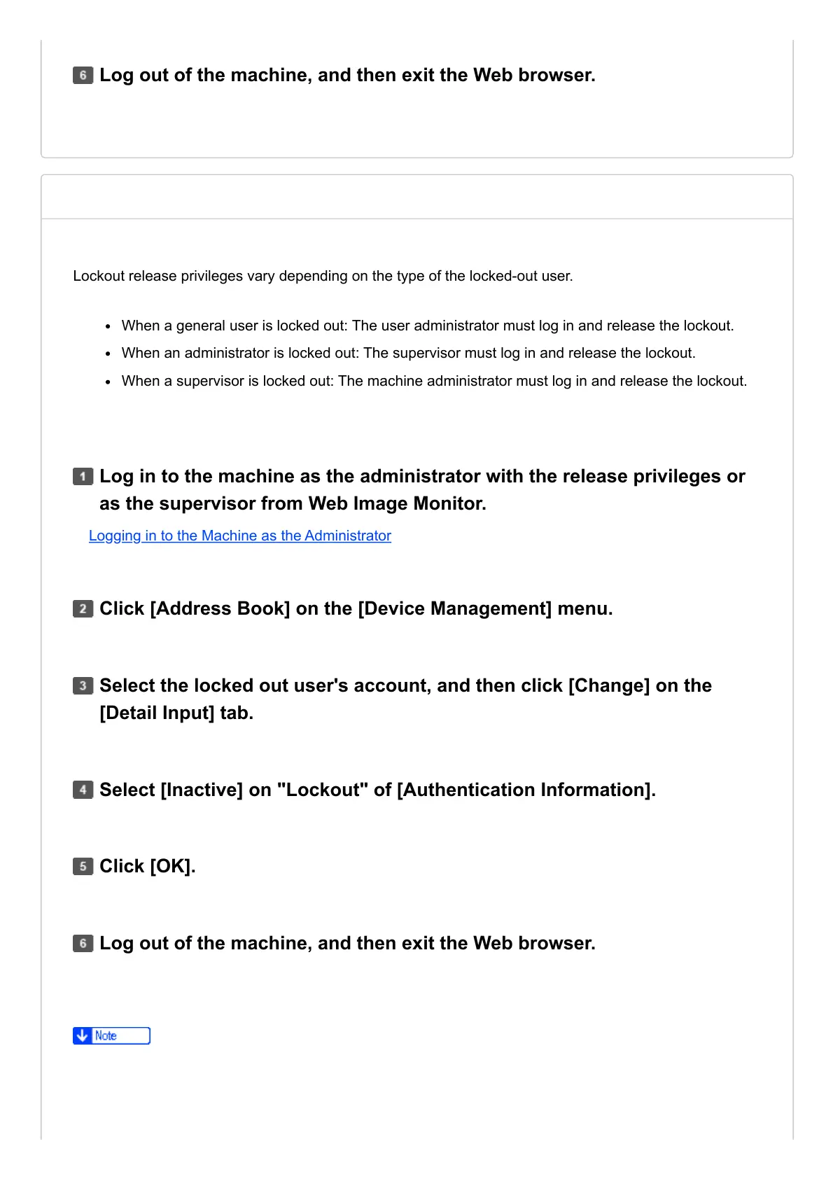 When a supervisor is locked out: The machine administrator must log in and release the lockout.