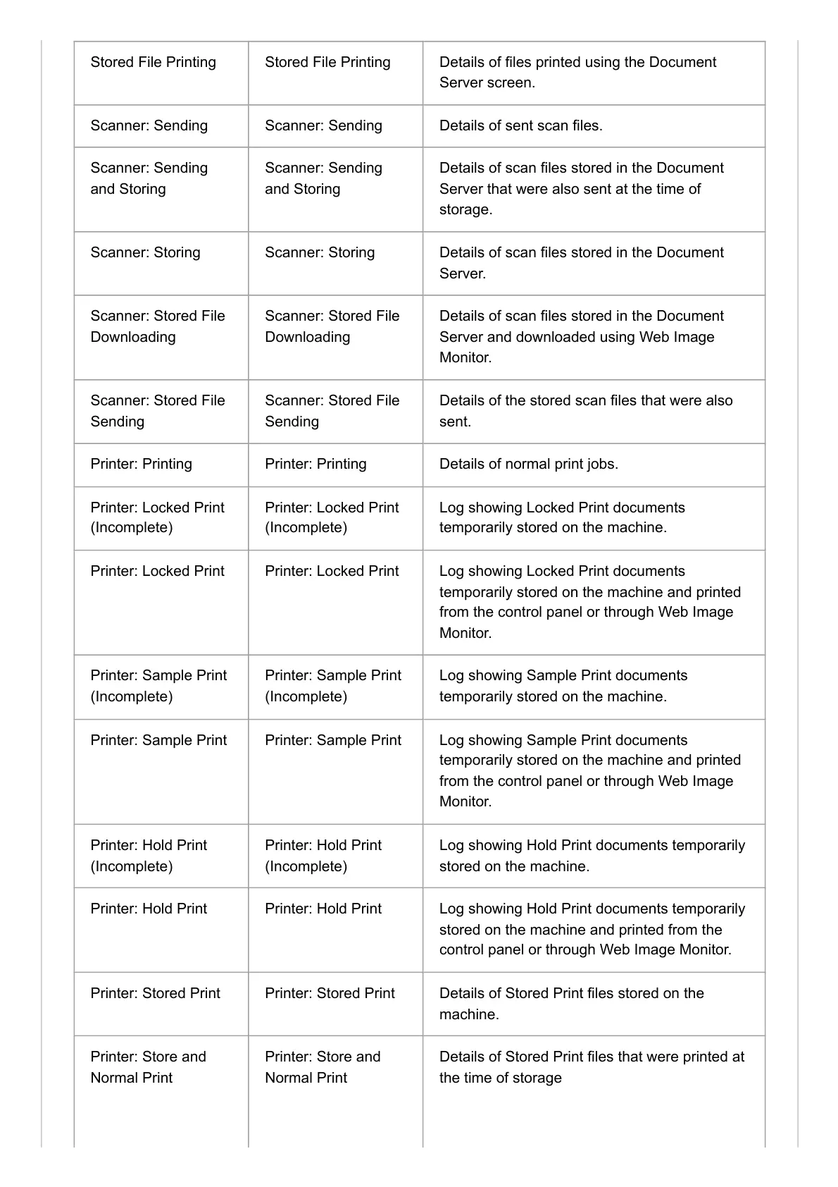 Stored File Printing Stored File Printing Details of files printed using the Document
