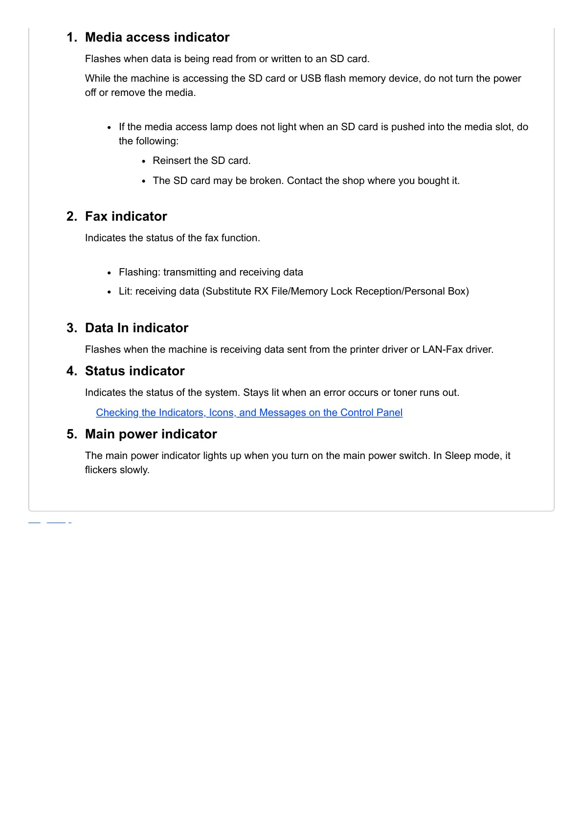 Checking the Indicators, Icons, and Messages on the Control Panel