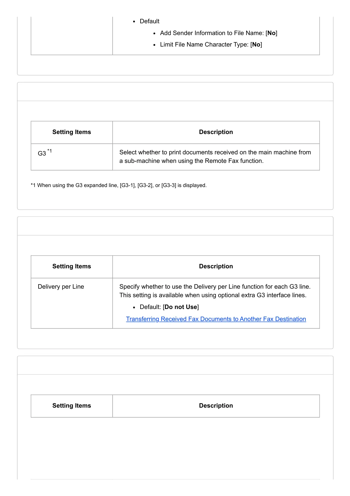 Delivery per Line Specify whether to use the Delivery per Line function for each G3 line.