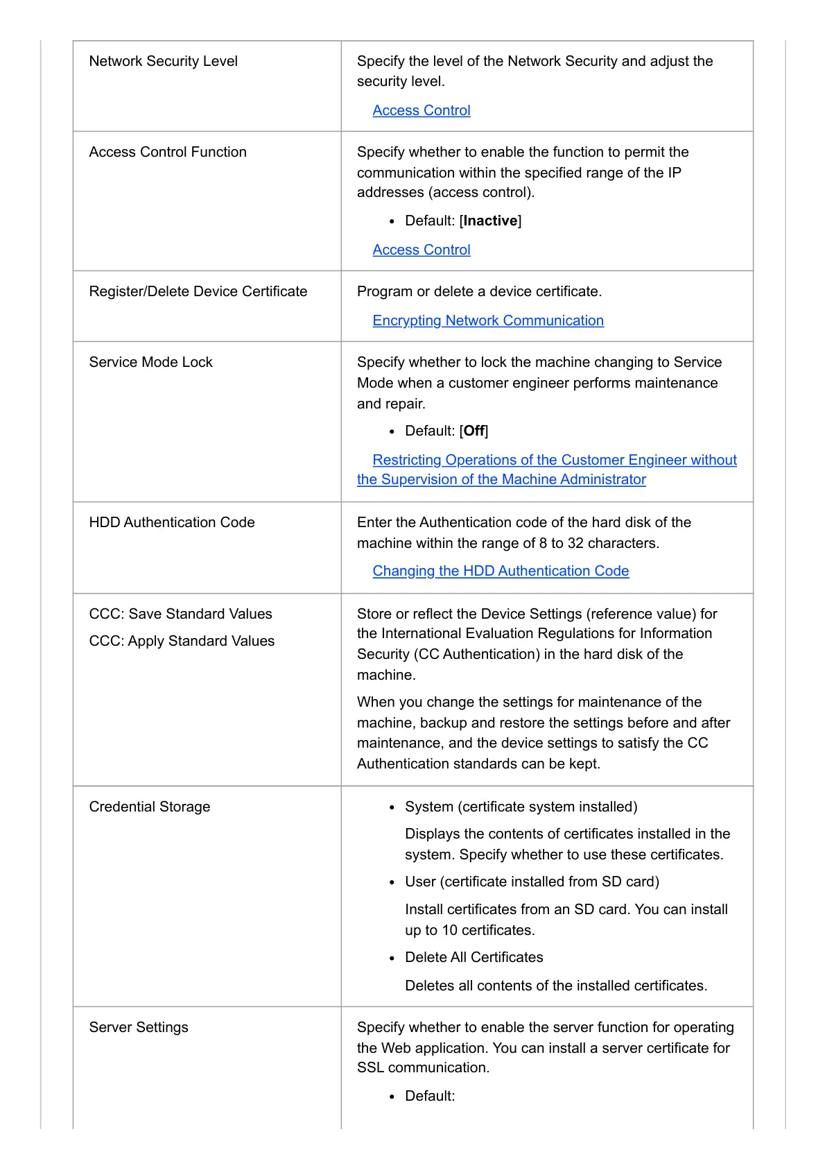 Service Mode Lock Specify whether to lock the machine changing to Service