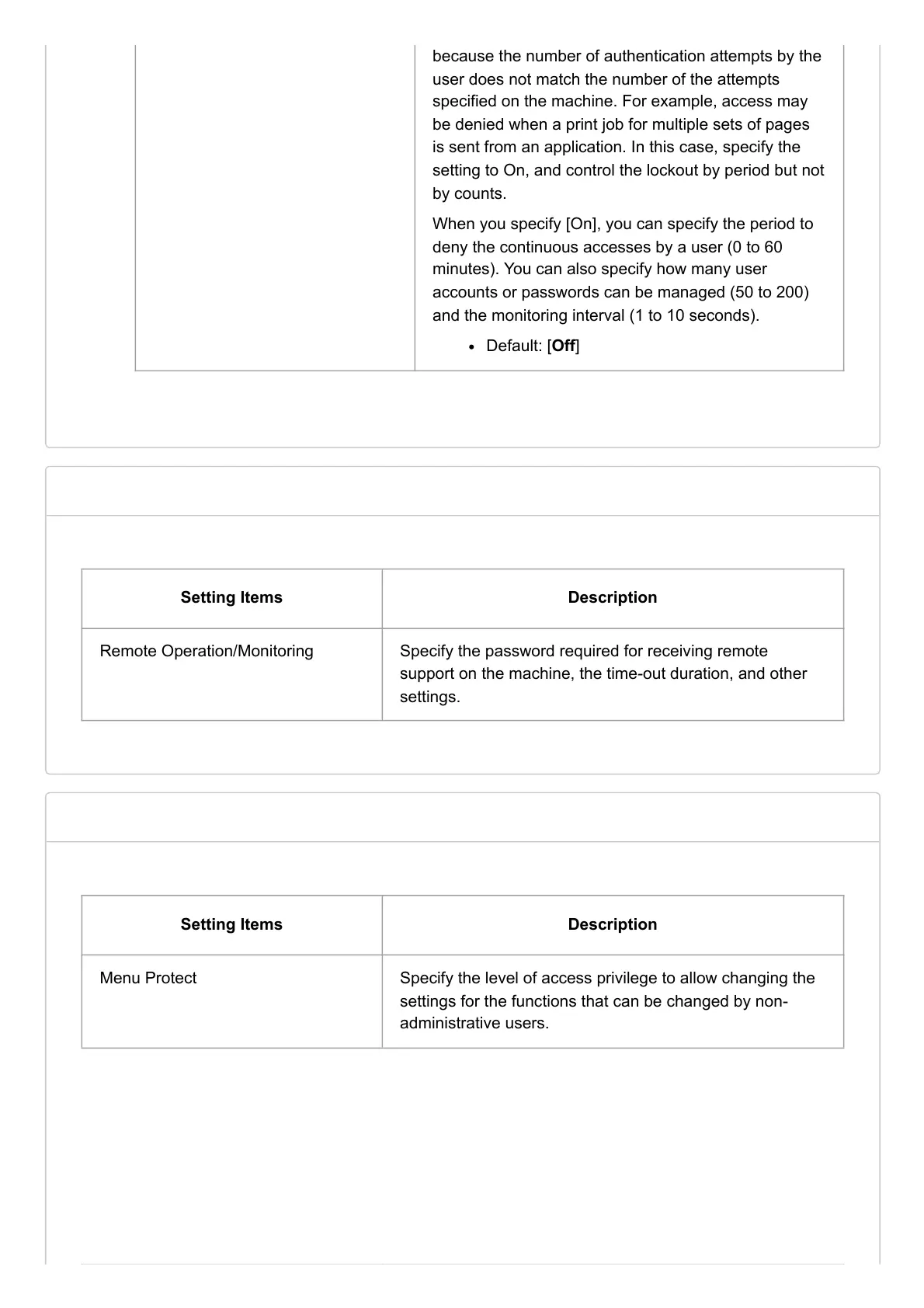 Remote Operation/Monitoring Specify the password required for receiving remote