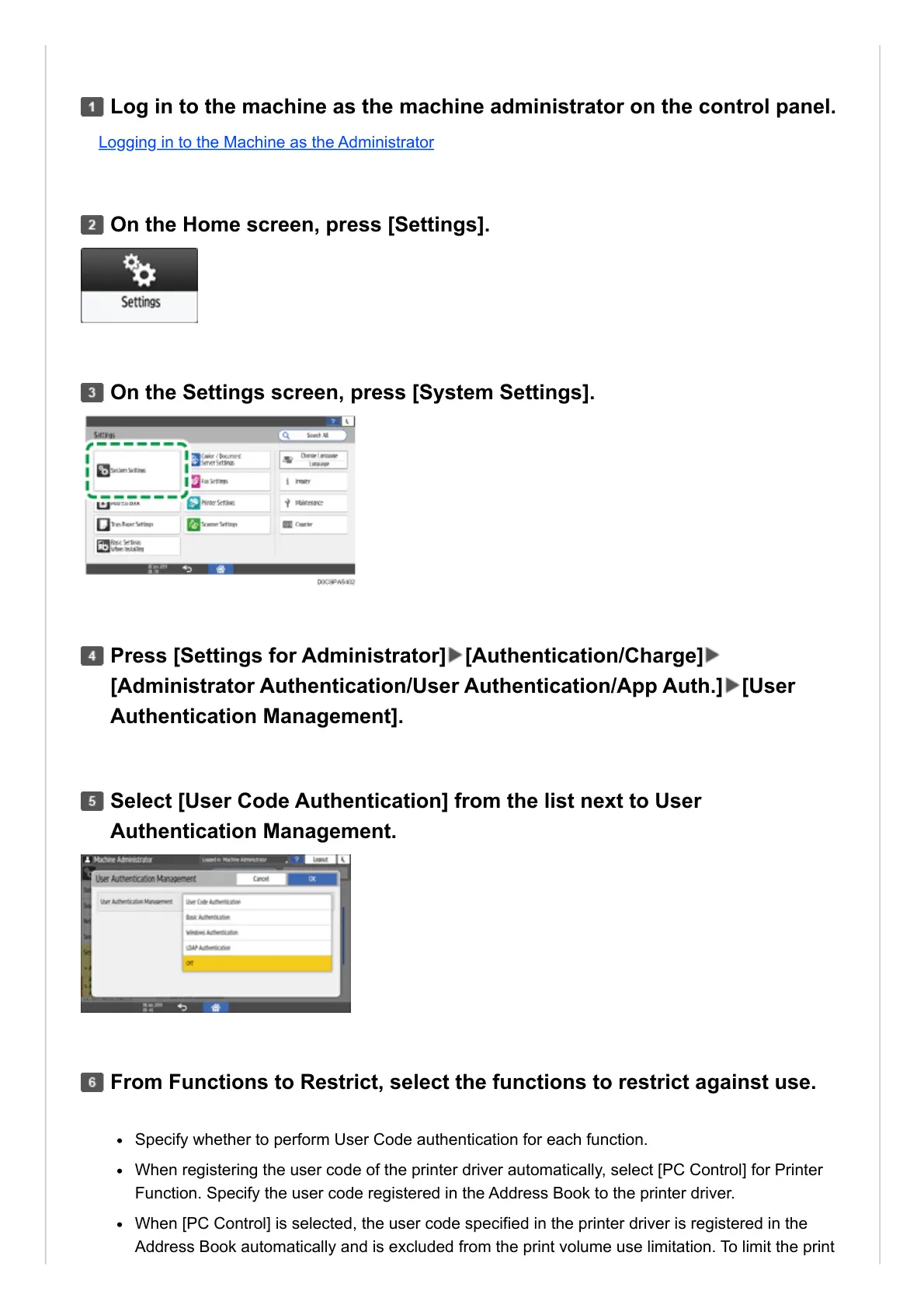 Verifying Users to Operate the Machine (User Authentication) | User Guide | IM 7000, IM 8000, IM 9000