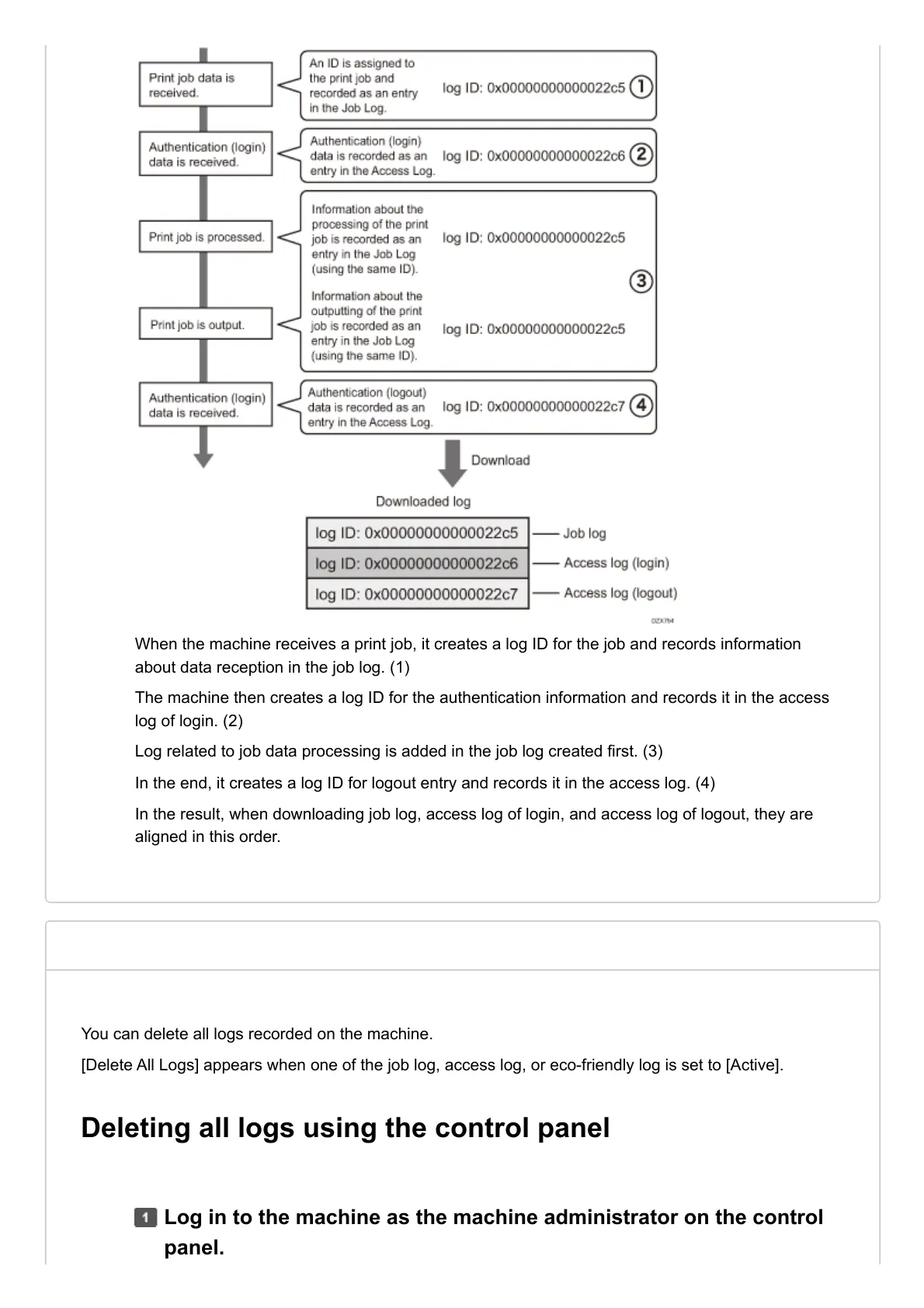 [Delete All Logs] appears when one of the job log, access log, or eco-friendly log is set to [Active].