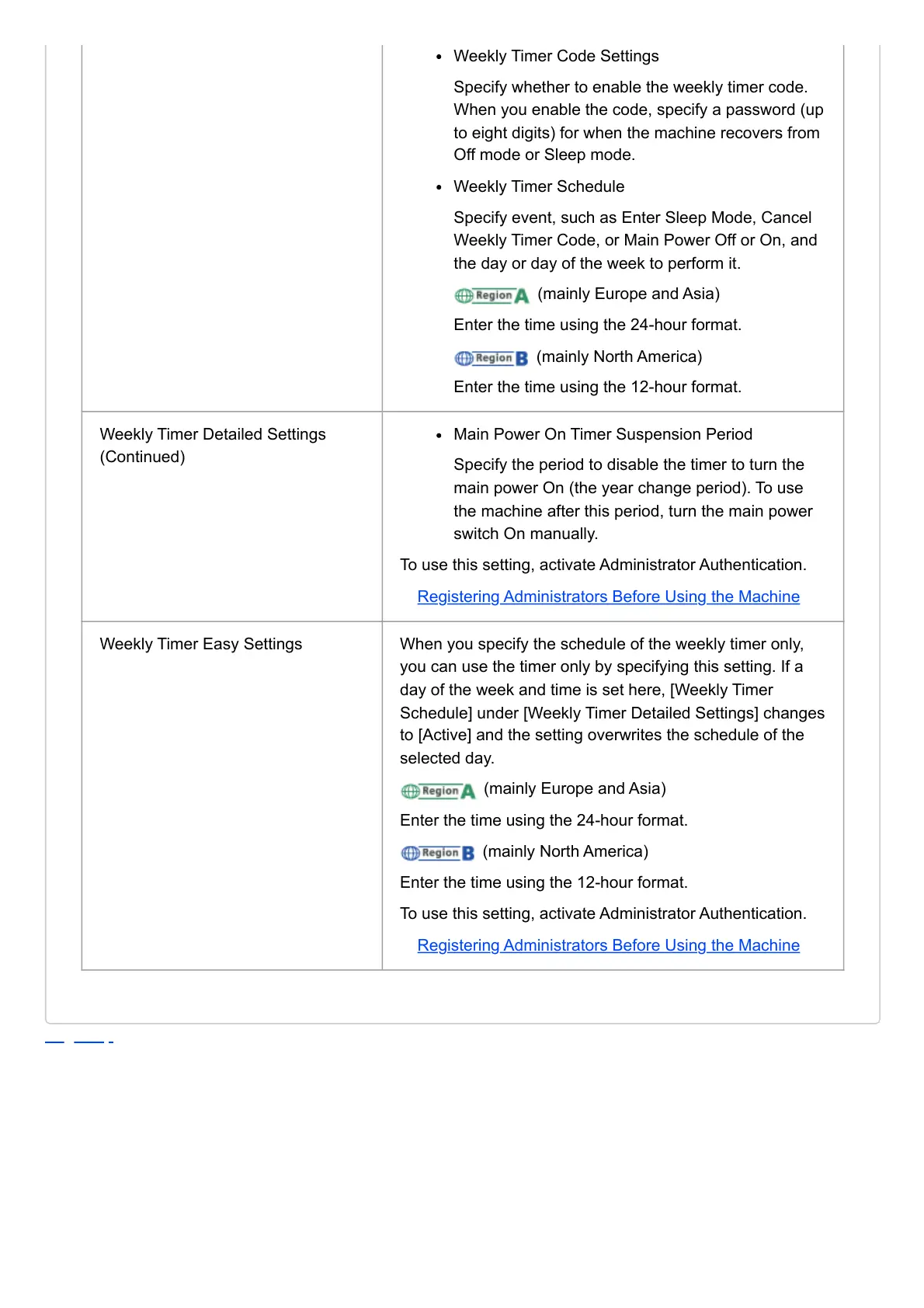 Weekly Timer Easy Settings When you specify the schedule of the weekly timer only,