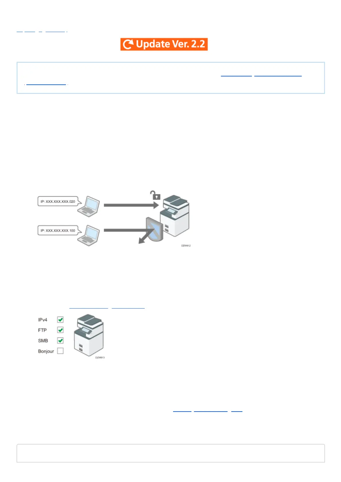 The administrator can limit devices or protocols that can be connected to the machine to avoid unintended access.