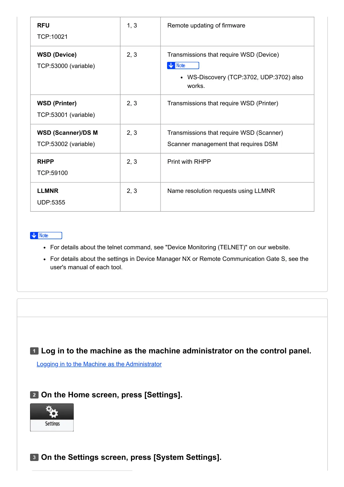 For details about the settings in Device Manager NX or Remote Communication Gate S, see the