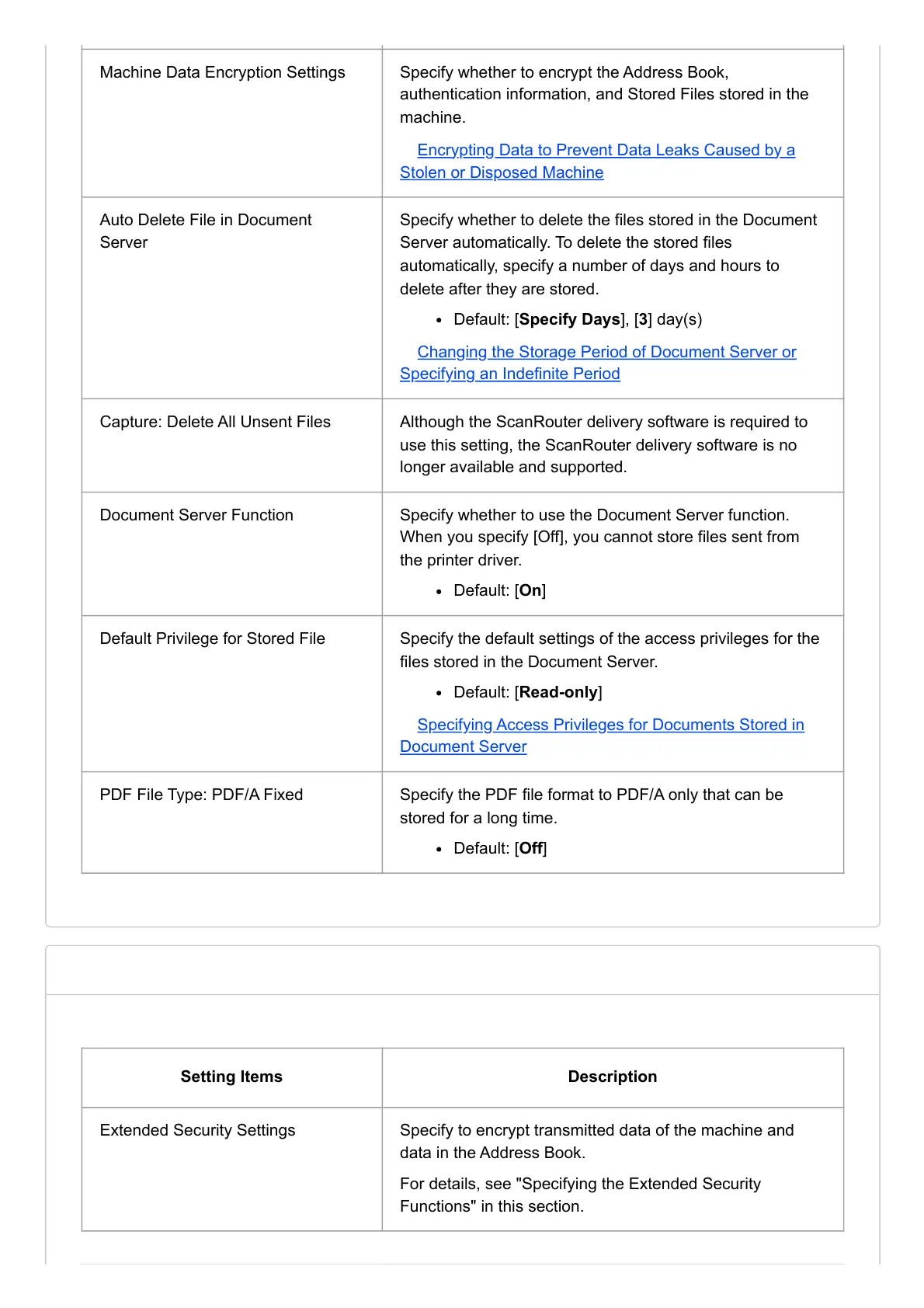 For details, see "Specifying the Extended Security