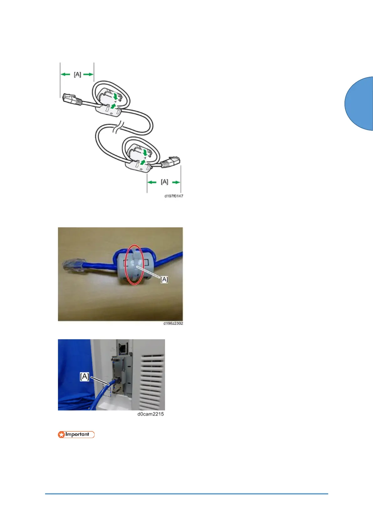 4. Only for installing this option in North America, bind both cores with cable ties [A] as shown