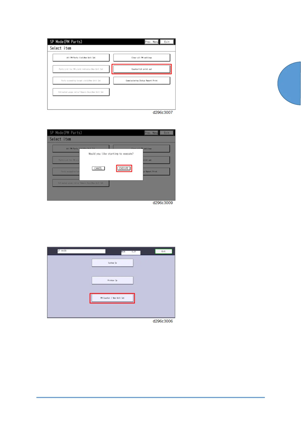 4. In the SP mode menu, press [PM Counter / New Unit Set].
