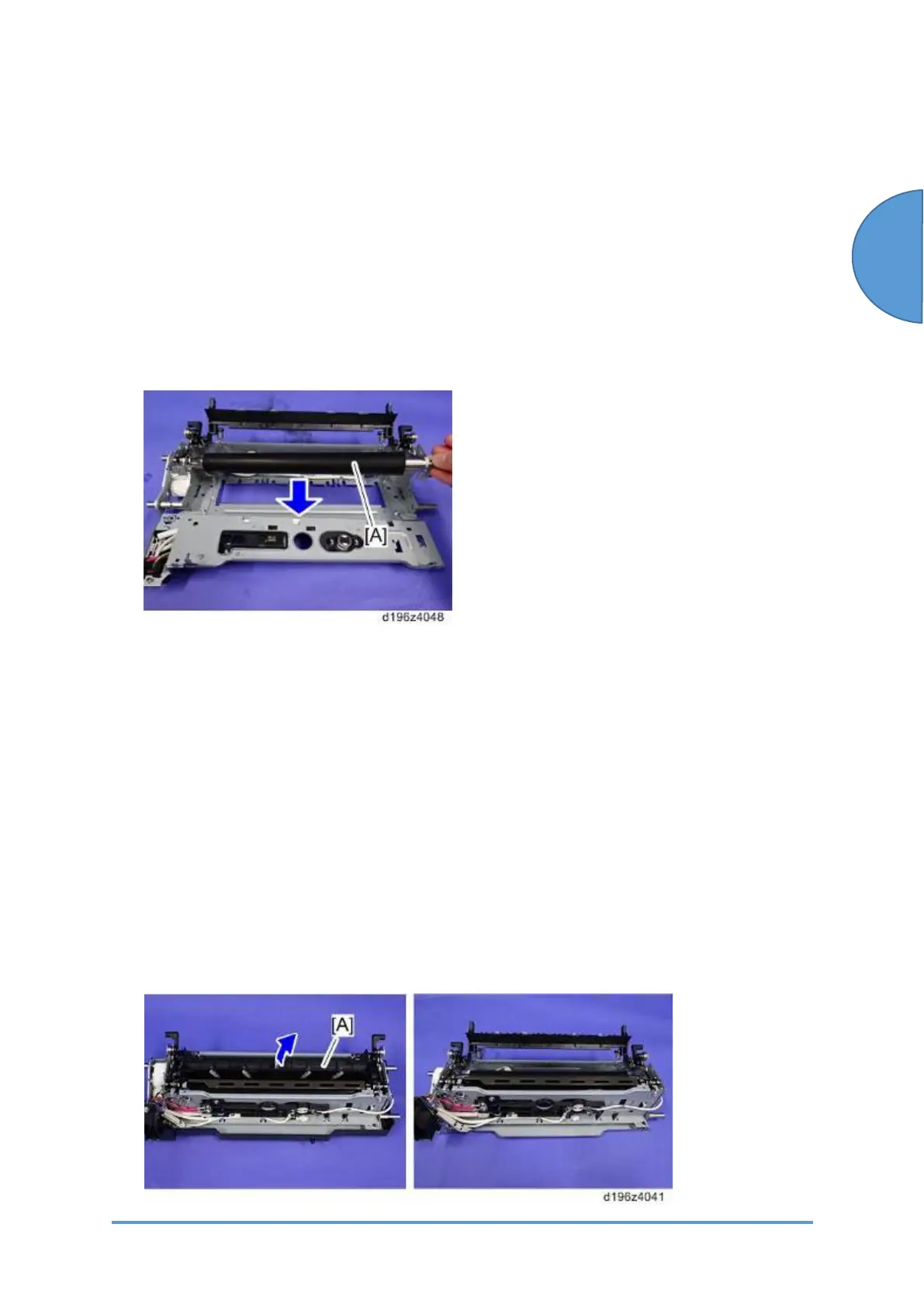 1. Remove the pressure roller [A].