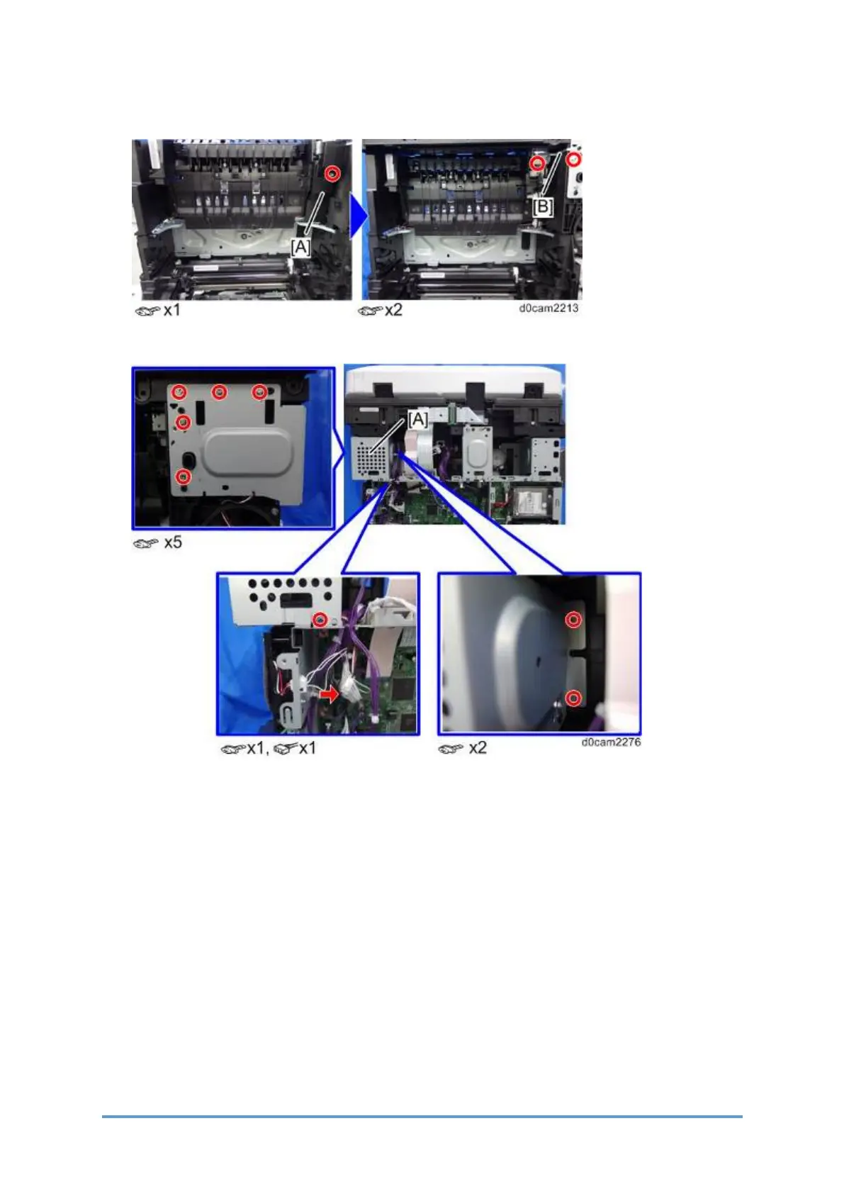 9. Remove the paper exit exhaust fan (FAN5) with the bracket [A].