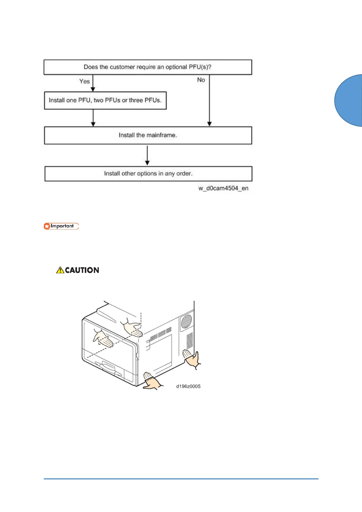 the optional paper feed unit, and then install the main unit and other options.