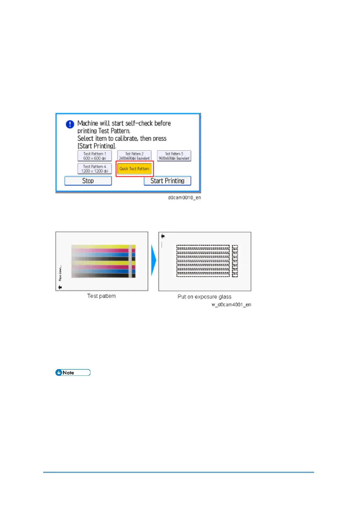 2. Press [Quick Test Pattern], then press [Start Printing] to print the test pattern.
