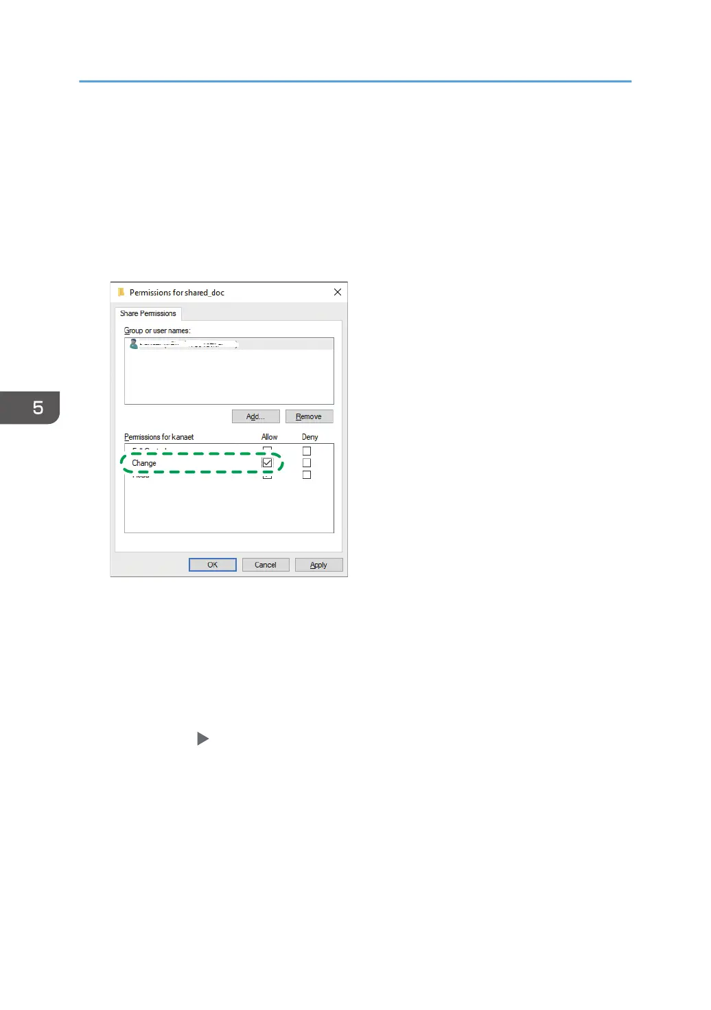 7. Select the added user, and then select the [Allow] check box under [Permissions].