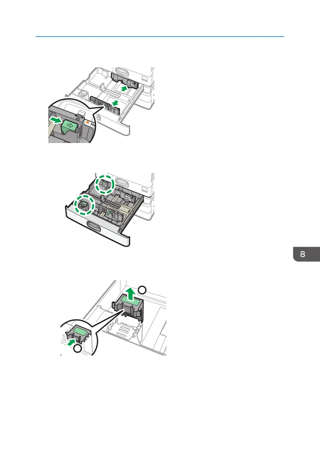 3. To load paper larger than A3, pull the tray out completely and then change the positions