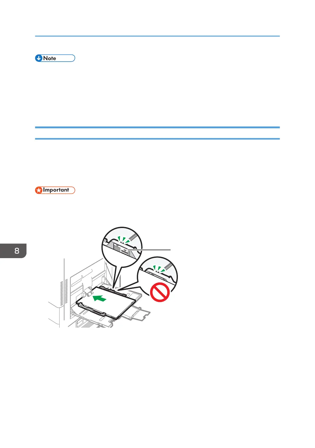 • Do not stack paper over the limit mark. If you load paper over the limit mark, the print image may