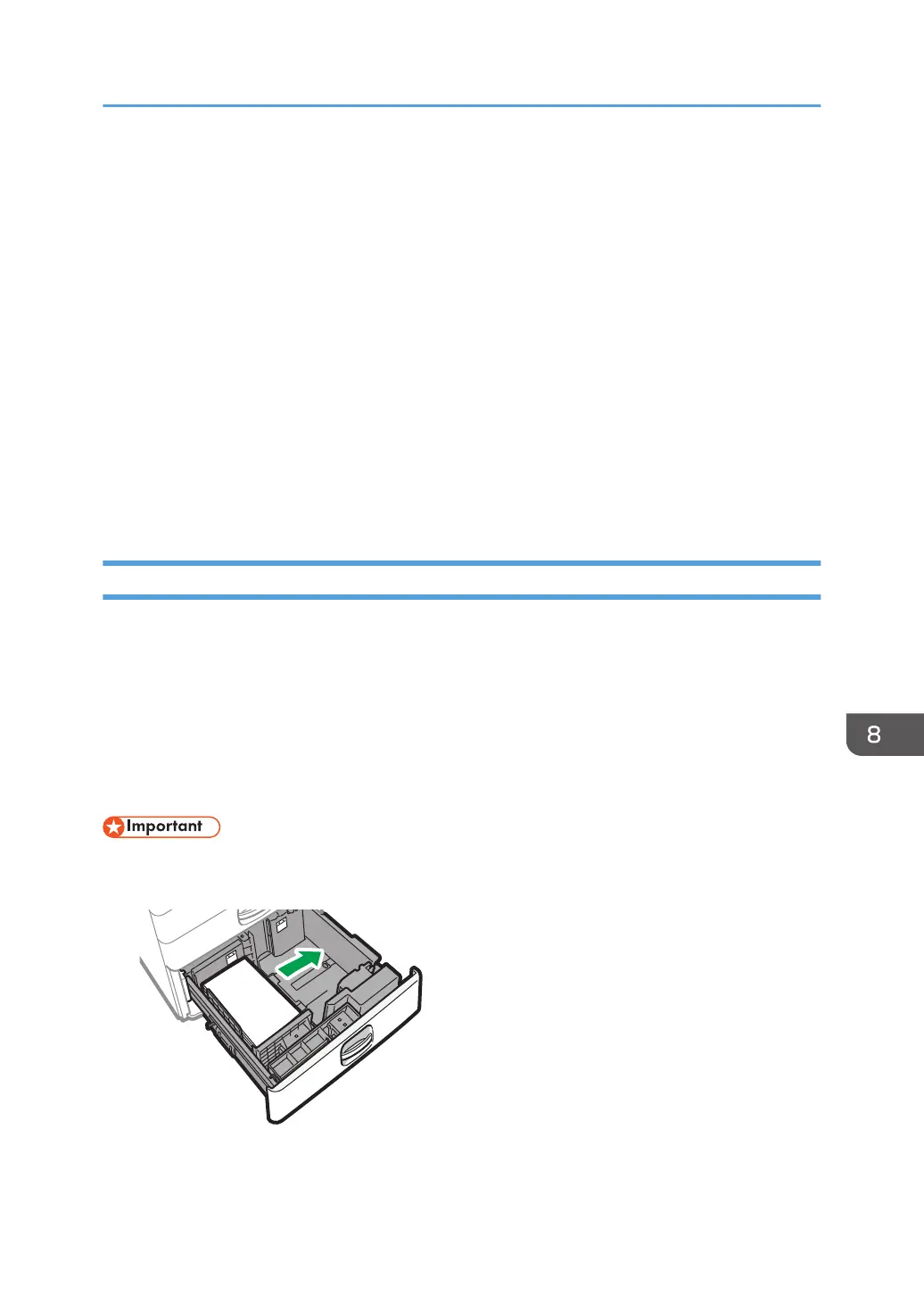 • The paper in the right side of Tray 3 (LCT) is fed to the machine. When the paper loaded in the