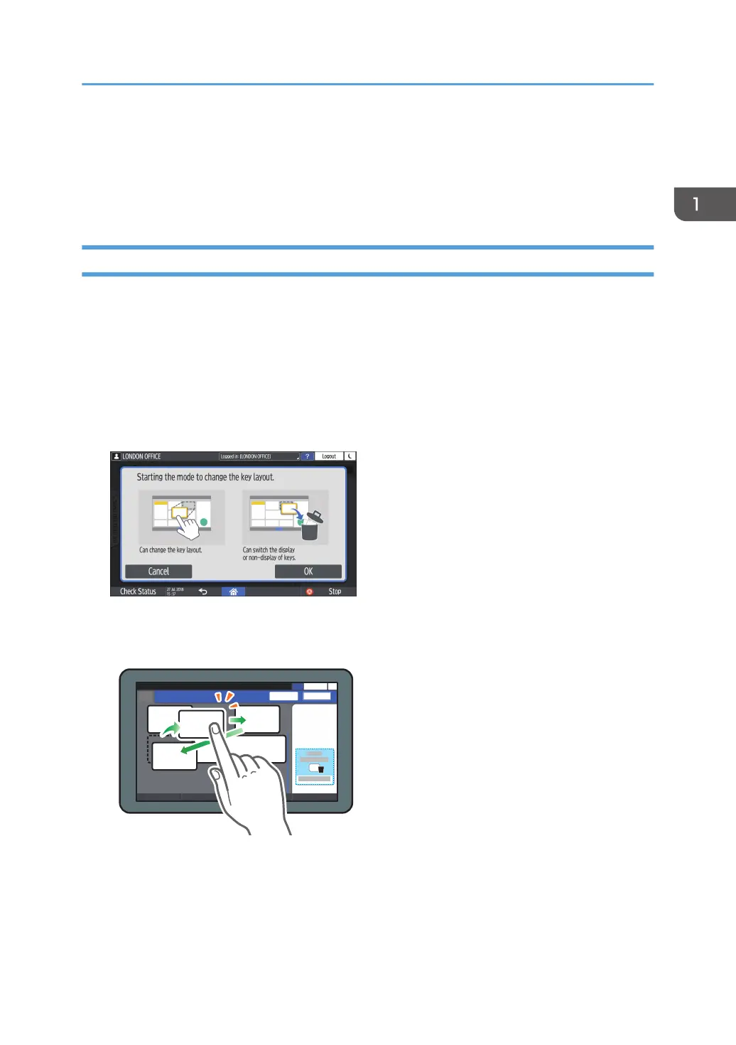 You can customize the layout and how the Copy function keys are displayed on the Copy screen in