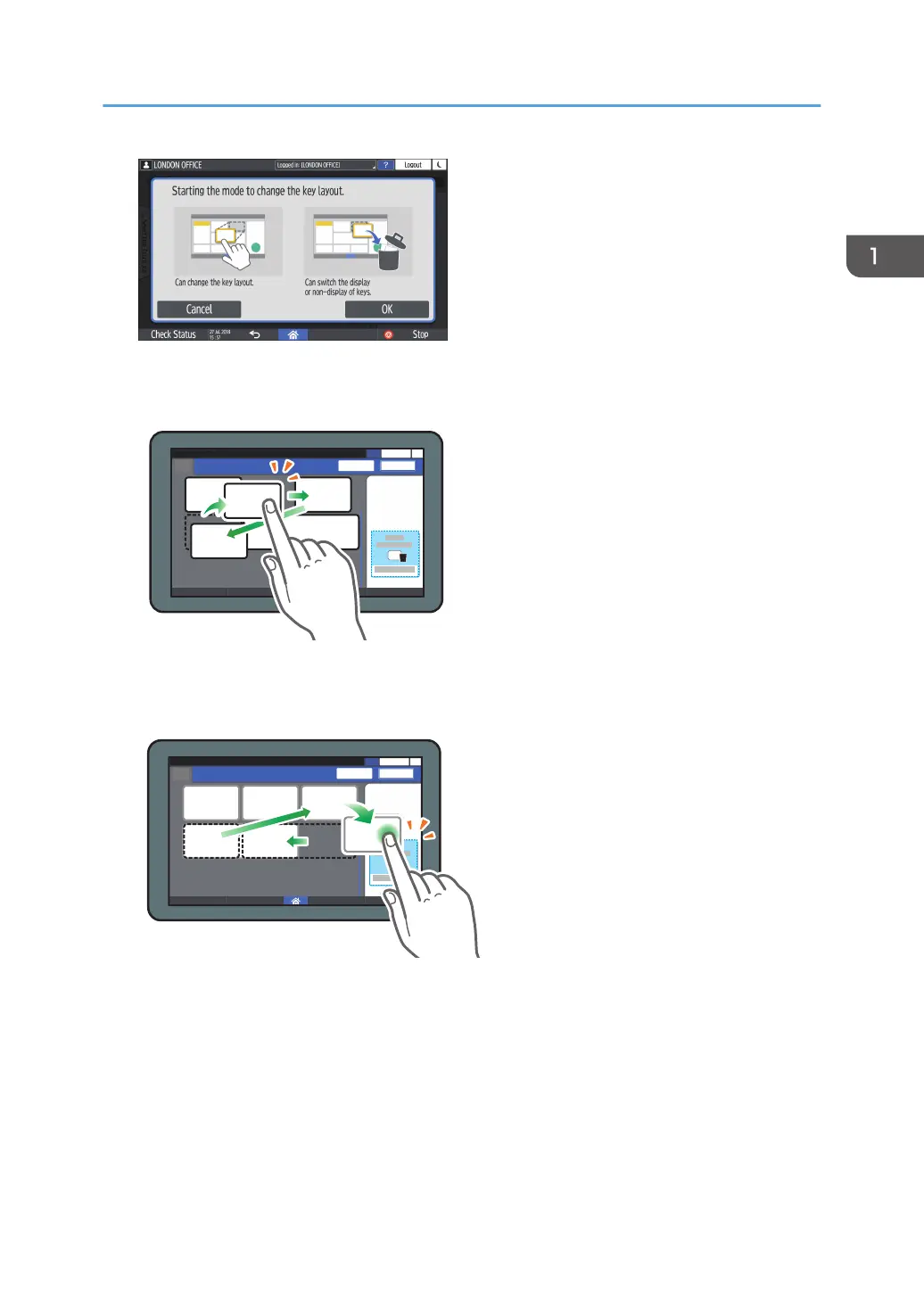Long-press a key to change the layout, drag it to a new location, and then press [OK].