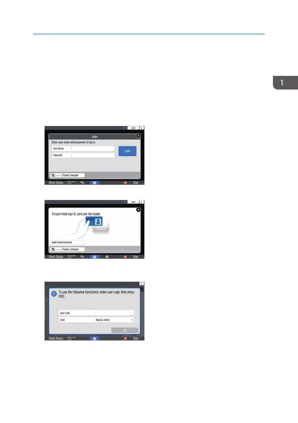 • Depending on the machine settings, you can use an IC card or mobile device for authentication.