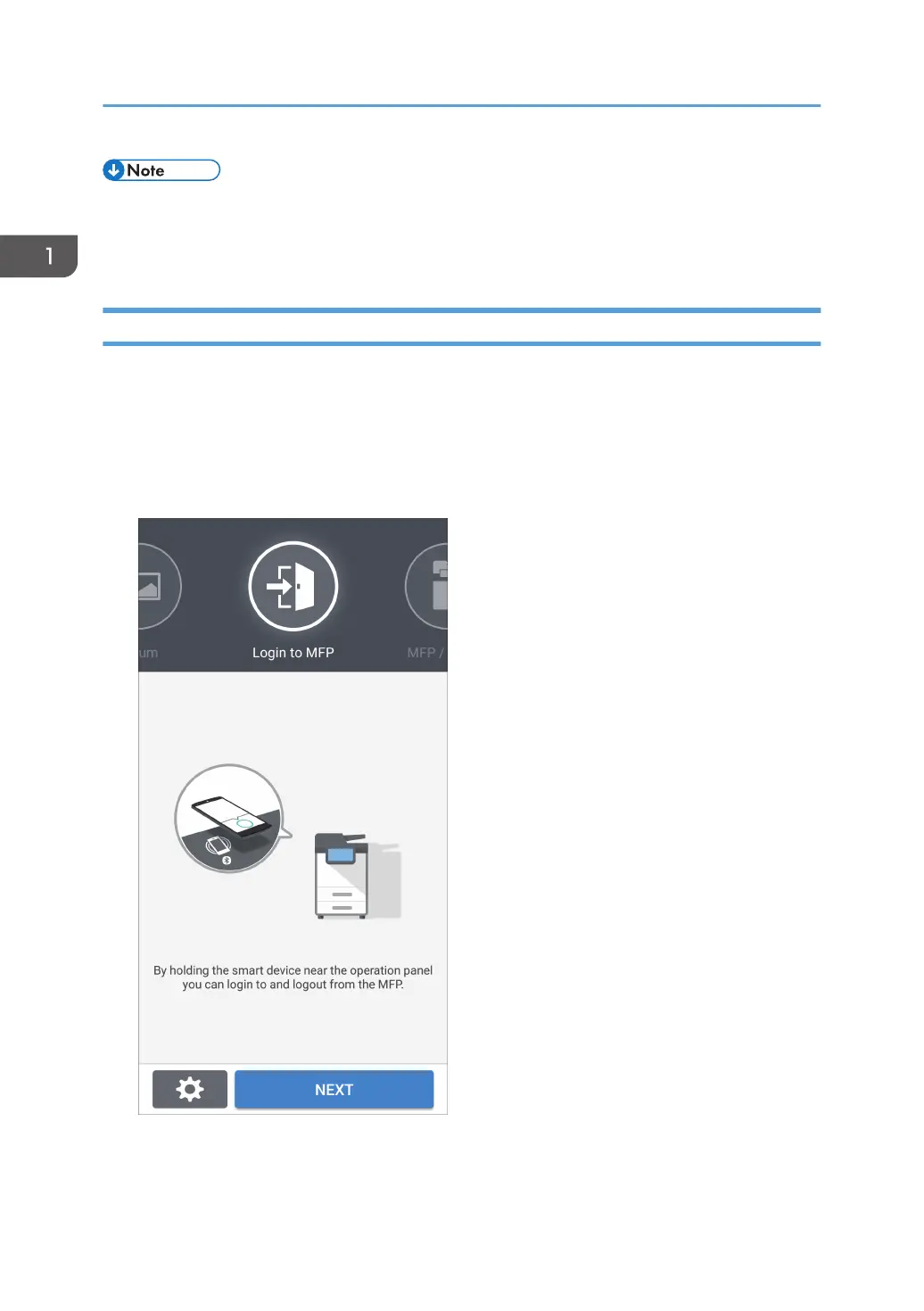 Log in to the machine using the RICOH Smart Device Connector app on your mobile device. You need a
