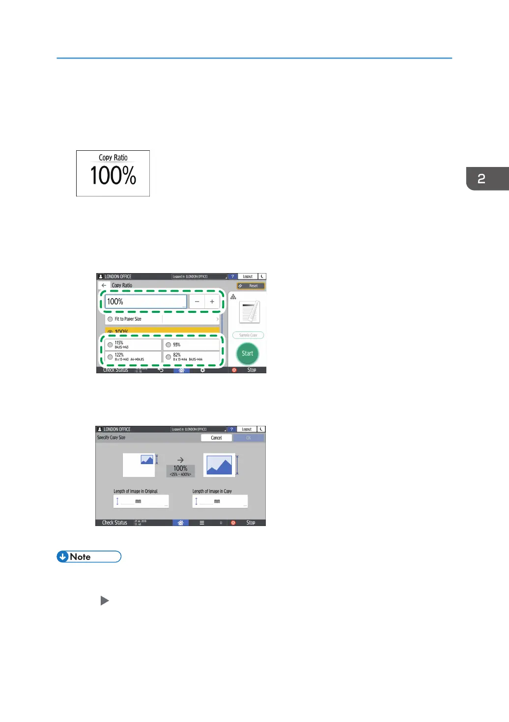 3. Press [Copy Ratio] and select a copy ratio or size.