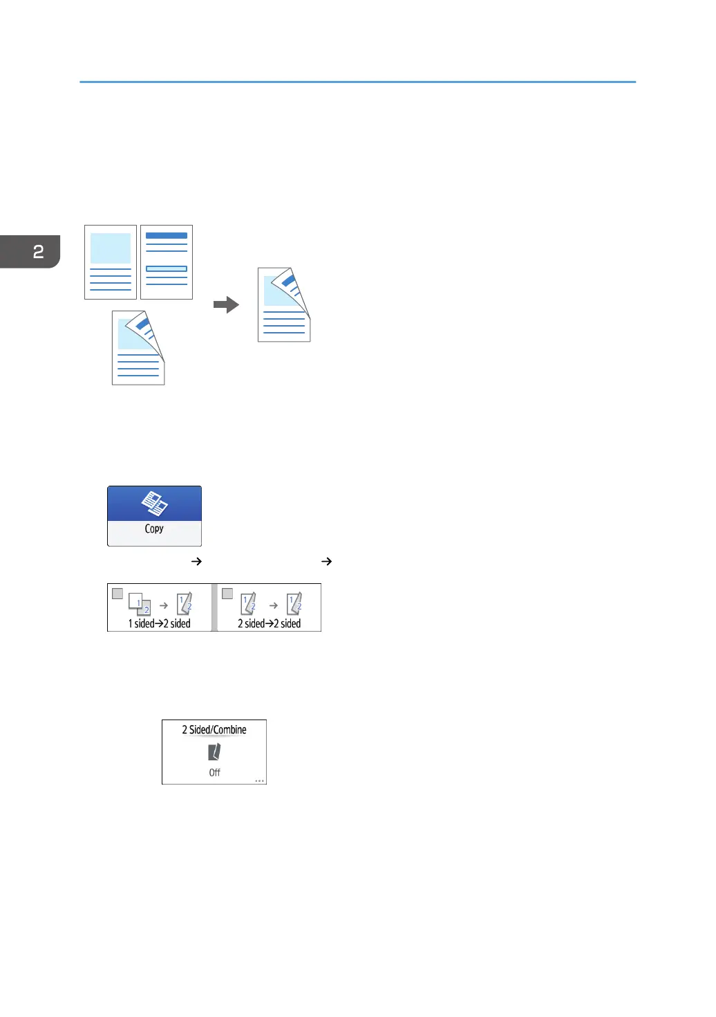 You can copy two 1-sided pages or one 2-sided page onto the front and back sides of a single sheet of