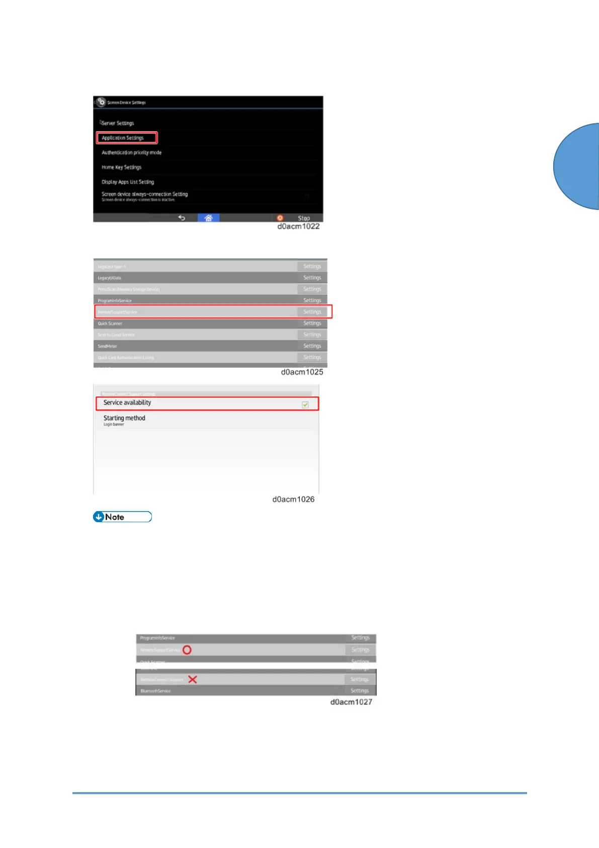 4. Select "Settings" in "RemoteSupportService" and check "Service availability".