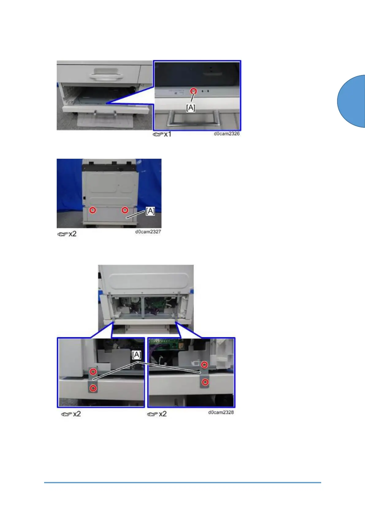 9. Remove the rear cover [A] of the optional paper feed unit.