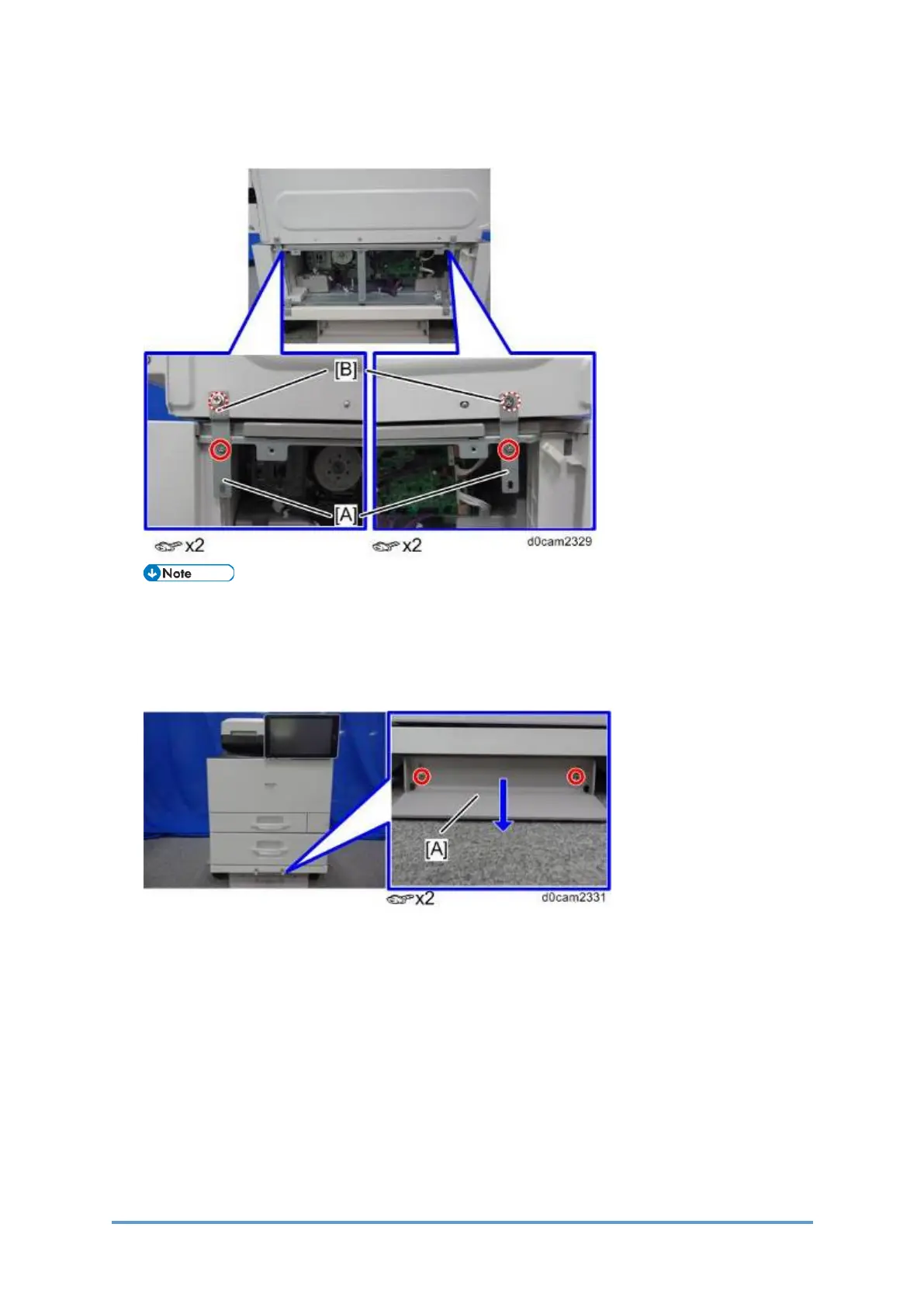 11. Secure the 1st level of the optional paper feed unit and the main machine with the two joint