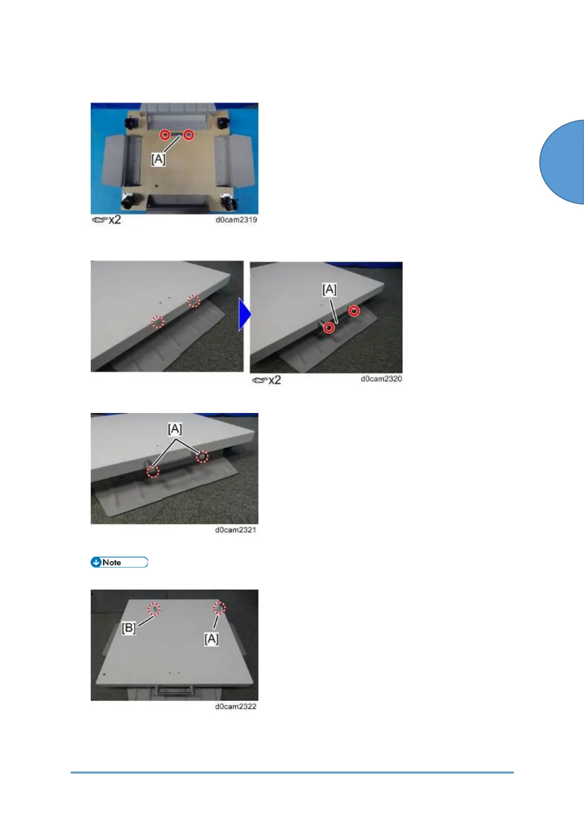 1. Attach the handle [A] removed in step 1 to the screw holes on the front of the caster table.