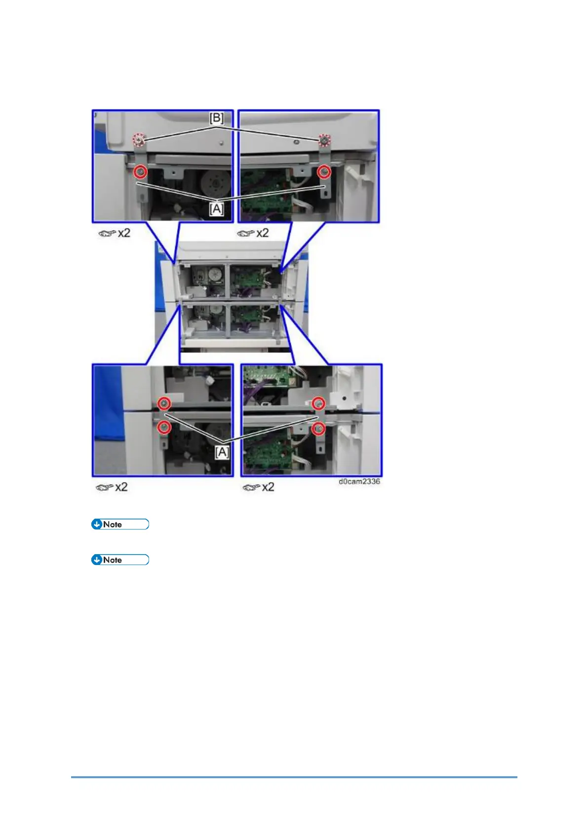 11. Secure the 1st and 2nd levels of the optional paper feed unit and the main machine with