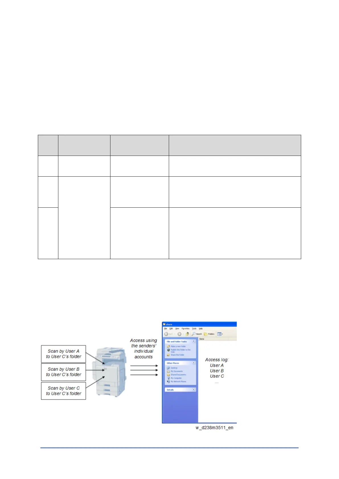 screen capture) or if User Auth. is enabled, the account configured in the user's Folder