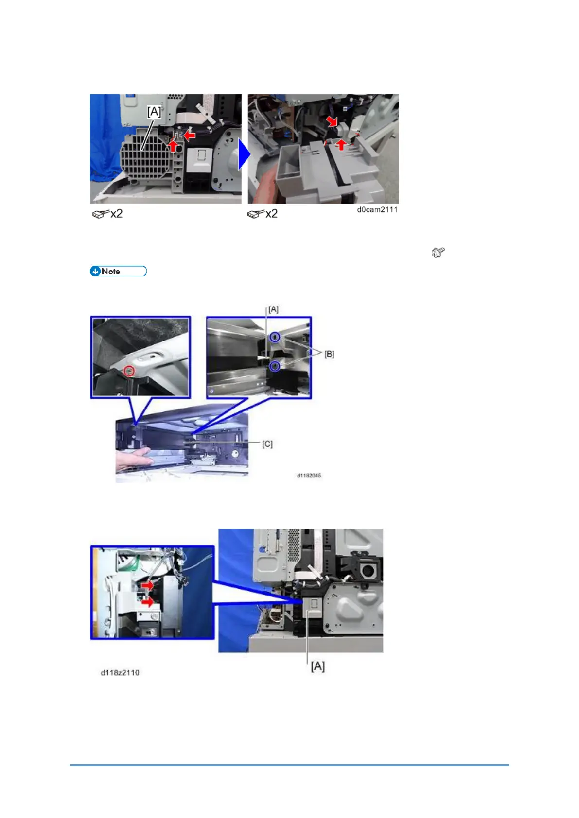11. Fit the small bumps on the heater into the holes [B] to install the heater [C] ( (M3×6) × 1)