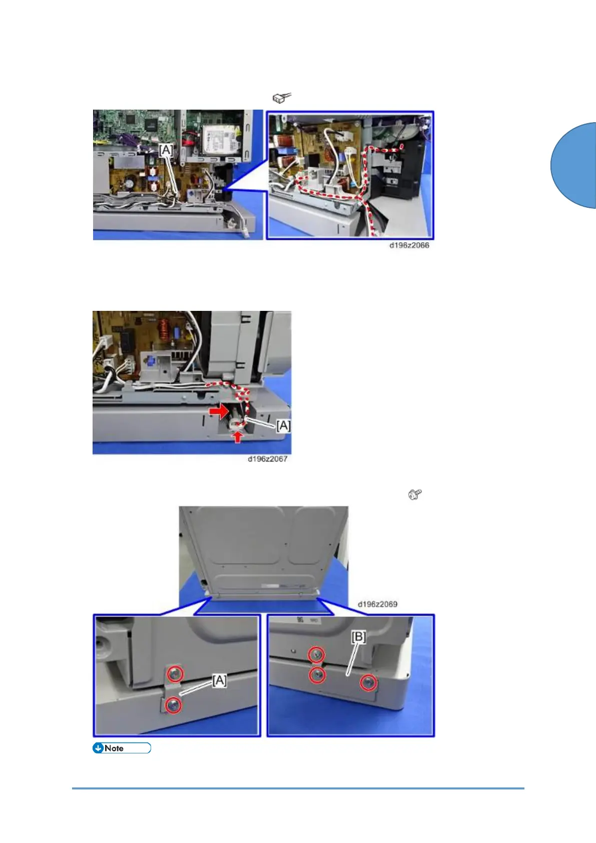 20. Attach the two securing brackets [A] [B] at the rear of the machine. ( × 5)