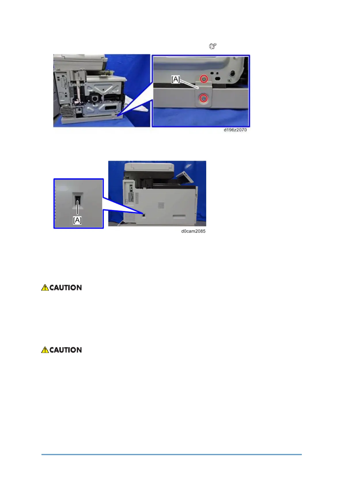 21. Attach the securing bracket [A] at the left of the machine. ( × 2)