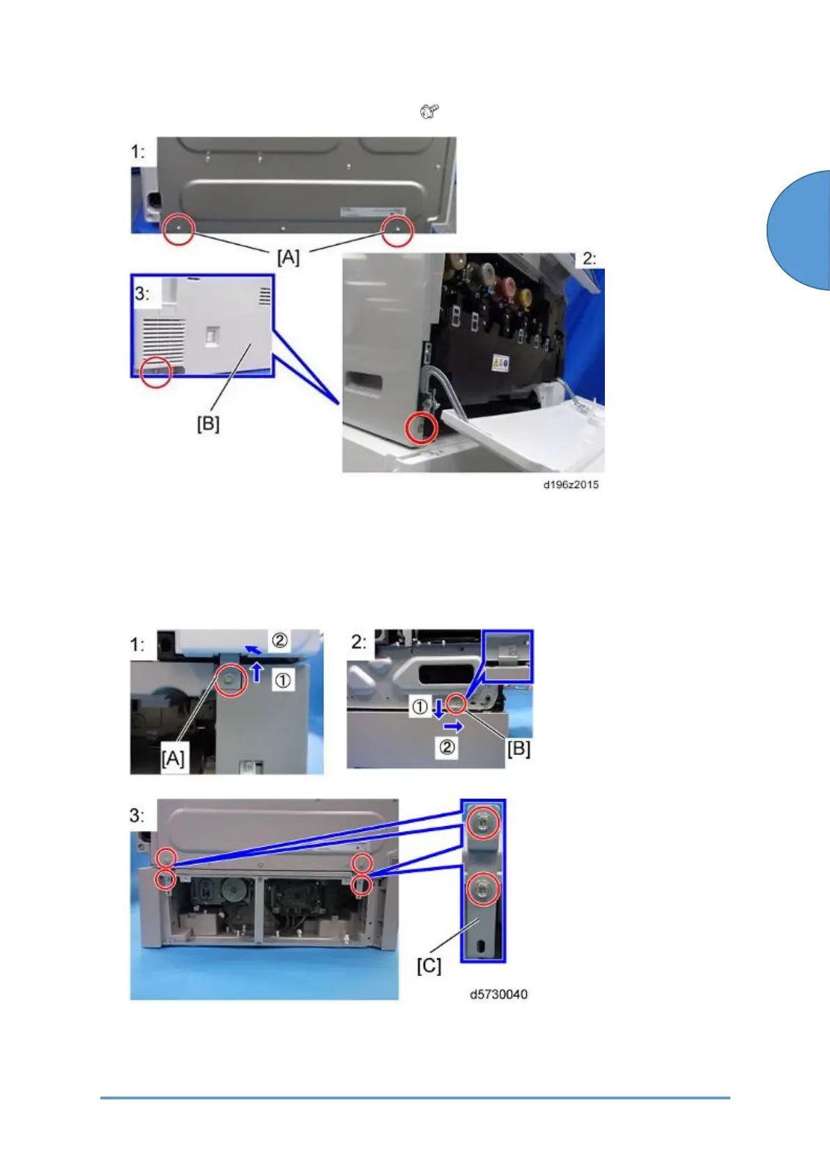 8. Remove the left cover [B] of the mainframe. ( × 2)