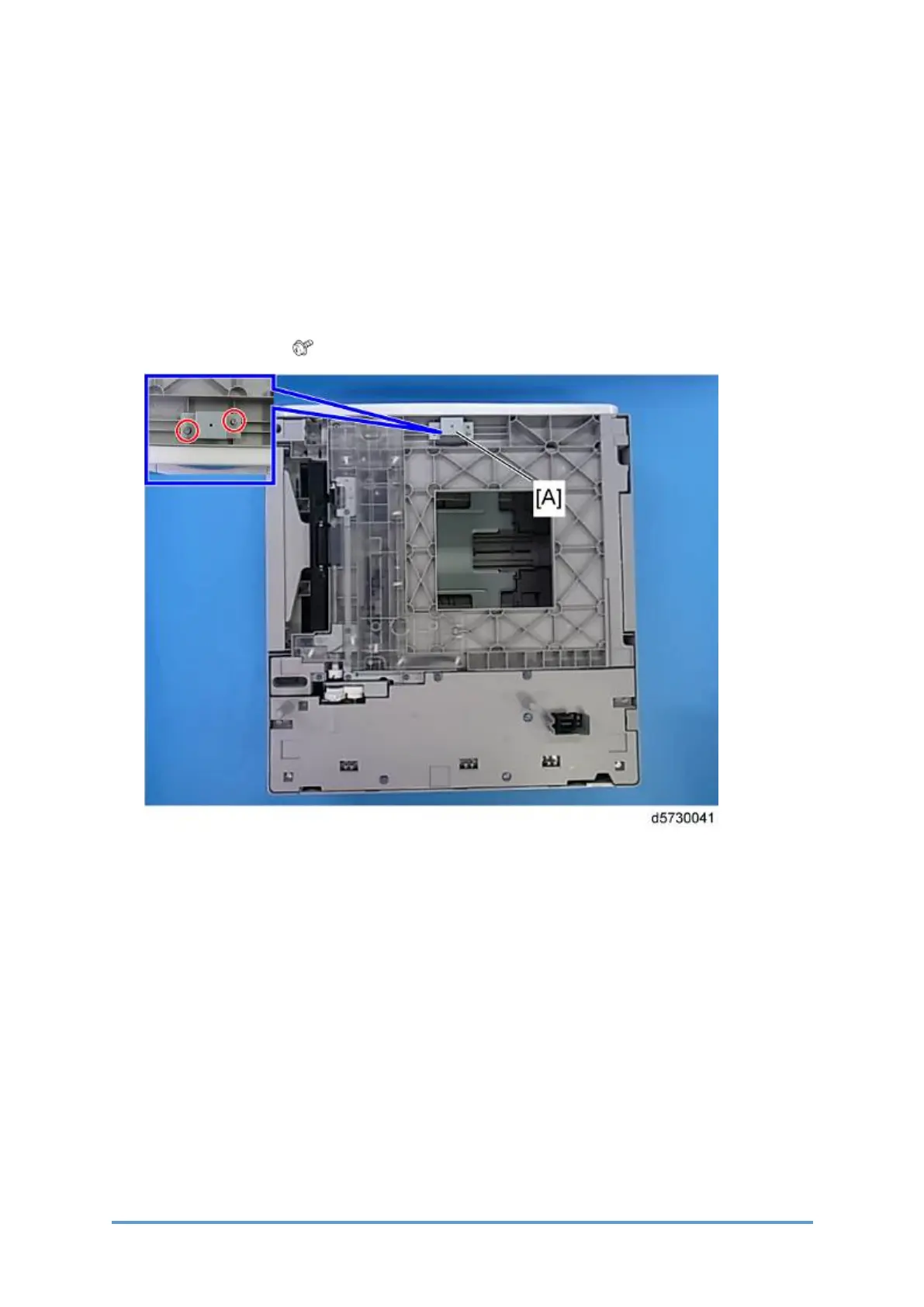 1. Attach the joint bracket (front center) [A] to the 2nd paper feed unit that will be installed at