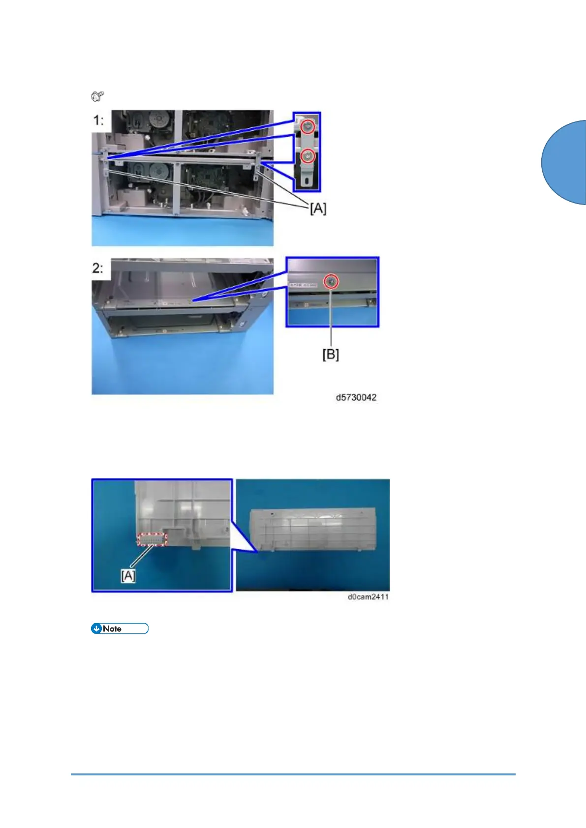 4. Join the two paper feed units with two joint brackets (rear) [A] and one screw [B]. (M3×6: