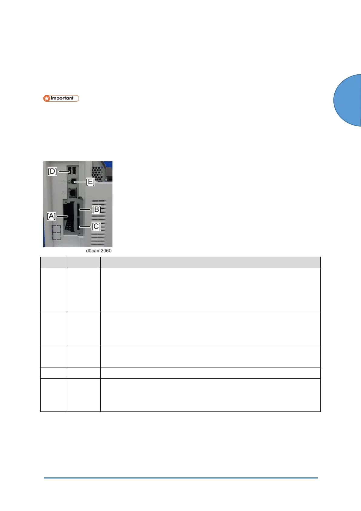 [D] USB I/F These ports (right and left) [B] are used for the IC Card Reader.