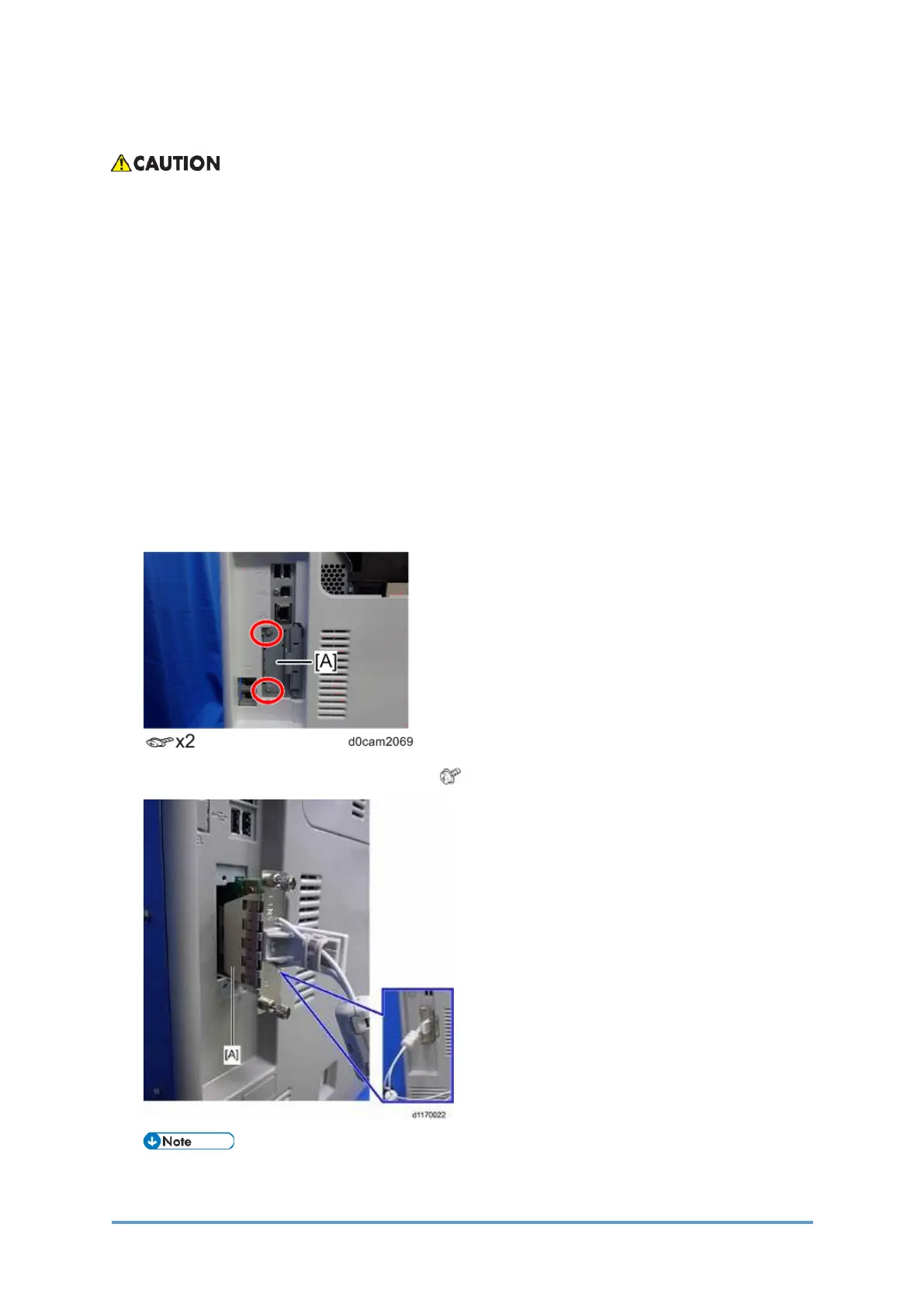 2. Install the wireless LAN board [A] (Knob × 2) into the board slot.