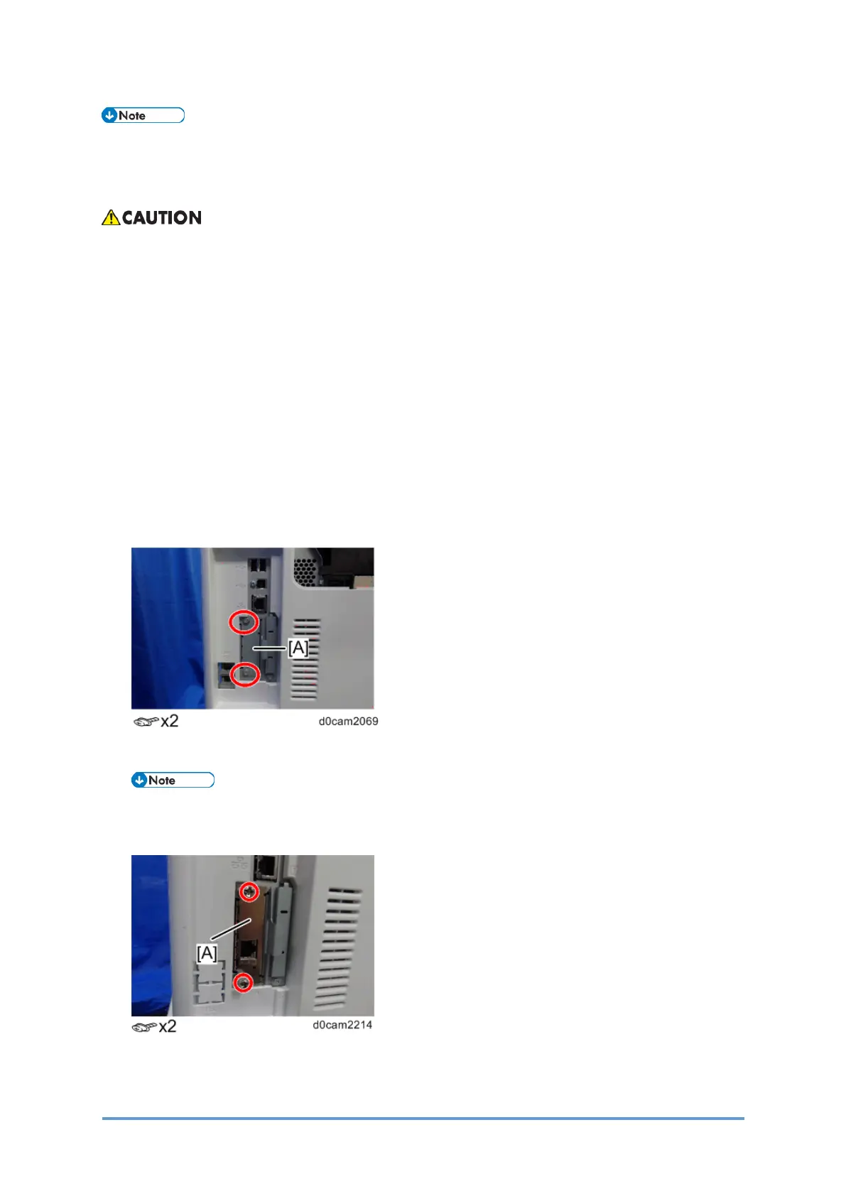 2. Insert the interface board [A] in the interface slot and then fasten it with screws.